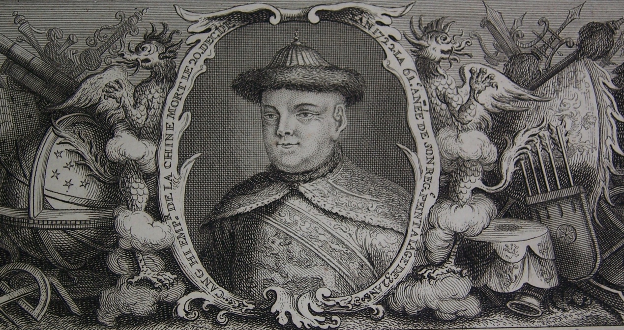 这幅有趣的图片出自300年前的一本法文书籍,如果不加说明,今天的人们恐怕很难相信,图中高鼻深目、骨相西化的中年男子,竟然是一位声名显赫的中国人。通过周边的那圈文字可以知道:此乃中国皇帝康熙,卒于1722年12月20日,在位61年,这是他32岁时的画像。