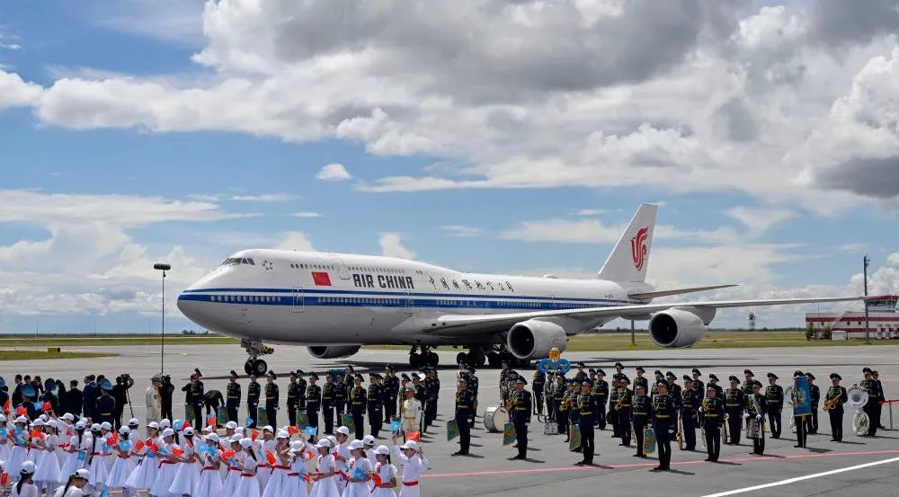 7月2日,国家主席习近平抵达阿斯塔纳,出席上海合作组织成员国元首理事会第二十四次会议并对哈萨克斯坦进行国事访问。哈萨克斯坦总统托卡耶夫亲自到机场迎接。新华社供图