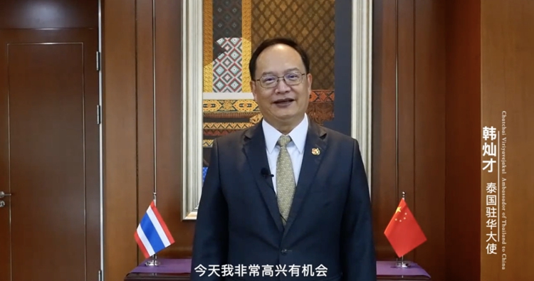 中国—东盟中心秘书长史忠俊、菲律宾驻华大使吉米、泰国驻华大使韩灿才发表视频致辞。中国外文局副局长余应福,对外经济贸易大学副校长、党委副书记文君,国务院国资委新闻中心副主任张义豪出席开幕式并致辞。