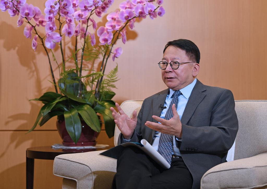 11月27日,香港特区政府政务司司长陈国基接受采访。新华社记者 陈铎 摄
