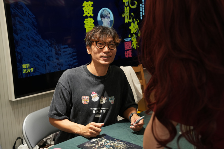 港产动作电影《九龙城寨之围城》原著小说作者余儿出席观影读书会并为读者签书。香港联合出版集团供图