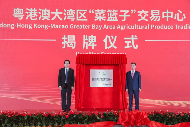 10月29日,中法合作项目粤港澳大湾区“菜篮子”交易中心正式揭牌。该交易中心由中国企业与法国翰吉斯国际市场合作运营,建成后将是粤港澳大湾区最大的“菜篮子”工程。新华社发