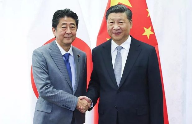 9月12日,国家主席习近平在符拉迪沃斯托克会见日本首相安倍晋三。(新华社记者 谢环驰摄)